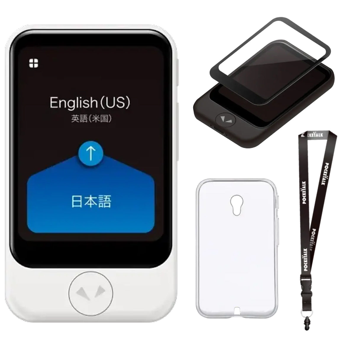 ポケトークS グローバル通信2年 アクセサリ3点セット - SIM内蔵モデル (ホワイト)